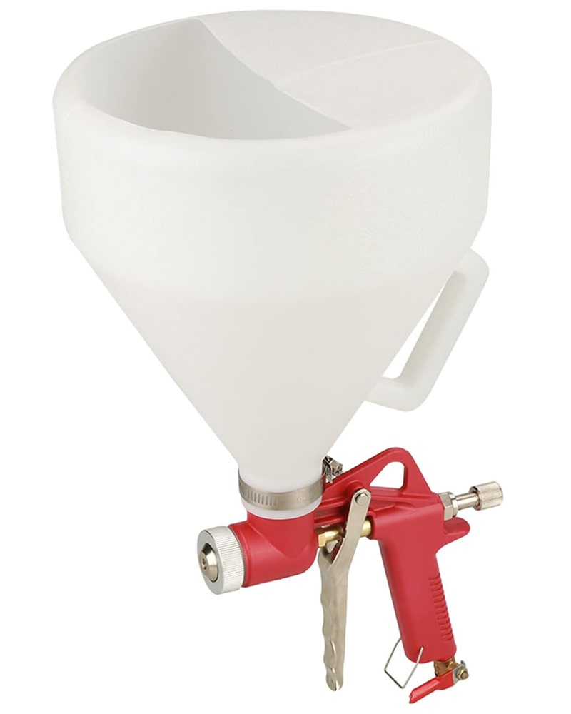 Подходит для текстурных покрытий. Бункерная система (6 литров) и удобная конструкция ручки пистолета облегчает покраску стен, потолков и полов. Изготовлен из высококачественного алюминиевого сплава и пластика, прочный и антикоррозионный, легкий, простой в использовании. идеальная производительность с регулируемым контролем материала. Ручка на чашке позволяет легко использовать и делает возможной обработку больших поверхностей за очень короткое время.