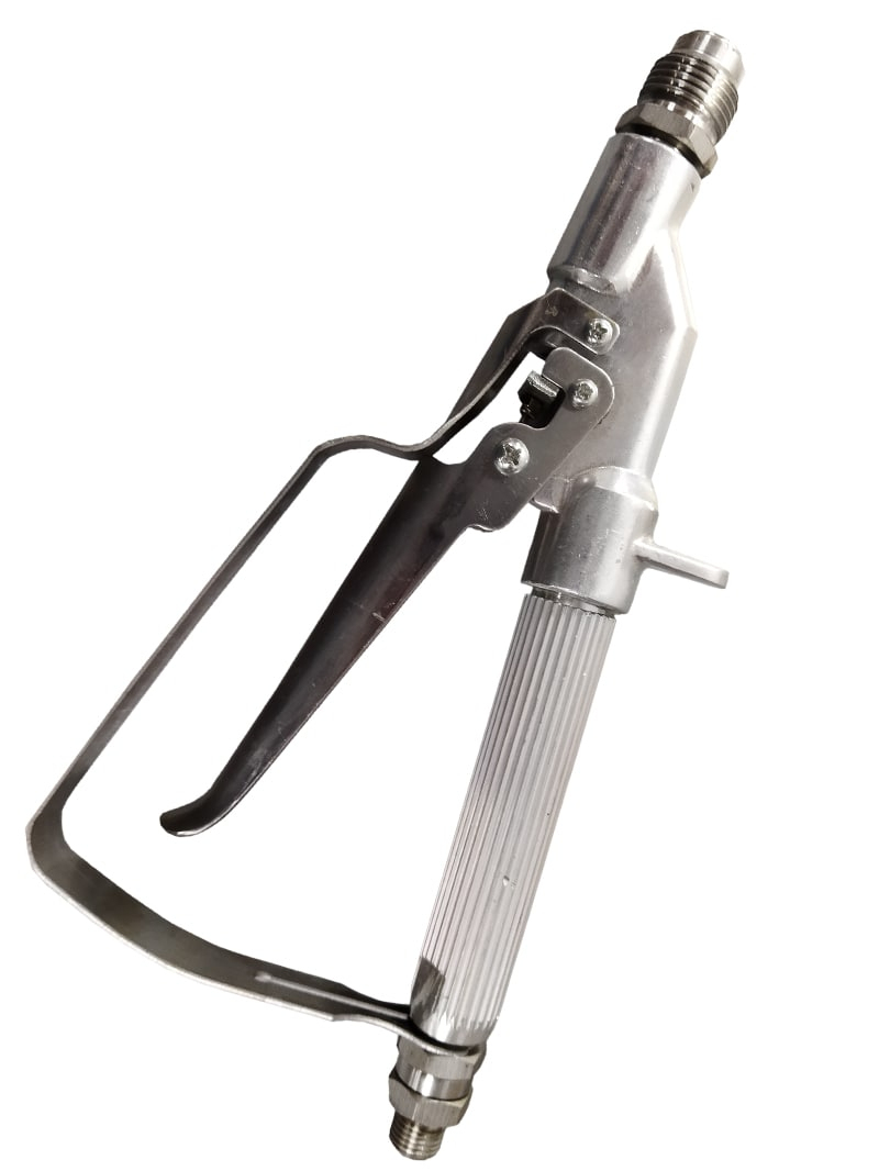 Безвоздушный краскораспылитель высокого давления, предназначенный для профессионального применения на строительных и промышленных окрасочных аппаратах. Краскопульт используется для безвоздушного распыления красок средней вязкости, в ручке безвоздушного краскопульта установлен фильтр. Присоединительные резьбы на краскопульте универсальные, на подключения к шлангу 1/4